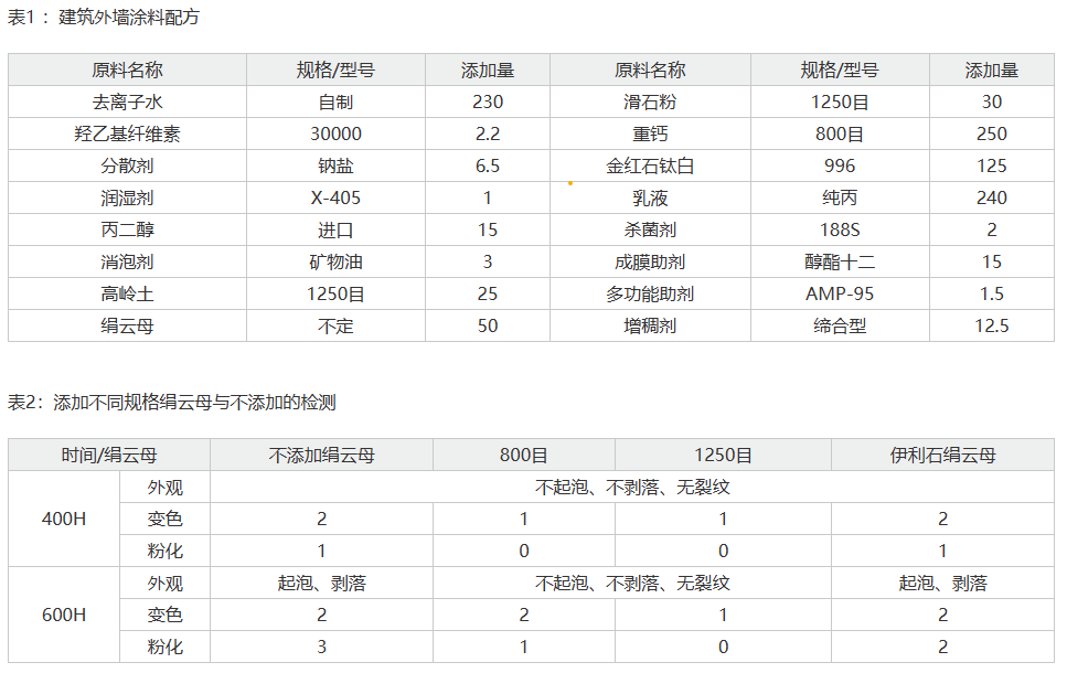 實驗表明,萬橋云母的800目和1250目云母具有更好的應(yīng)用效果。
