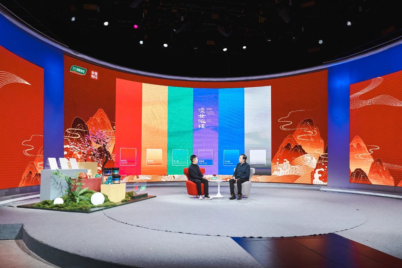11月26日晚,三棵樹再次聯手央視財經開啟“國色傾城耀東方,三棵樹漆映美居”直播活動。總臺央視主持人陳偉鴻,總臺記者王冰冰,原中國美術學院副院長、中國色彩學科領軍人物宋建明教授,旅行博主房琪kiki,短道速滑男子500米世界紀錄保持者武大靖以及三棵樹集團副總裁洪圣源,三棵樹集團裝修漆產品負責人梁建鶴一起,在央視演播室共同探析以傳統五色為代表的“國漆國色”流傳千年的背后奧秘,并在“三棵樹健康家”概念空間向消費者展示了三棵樹國石系列藝術漆的獨特魅力。
