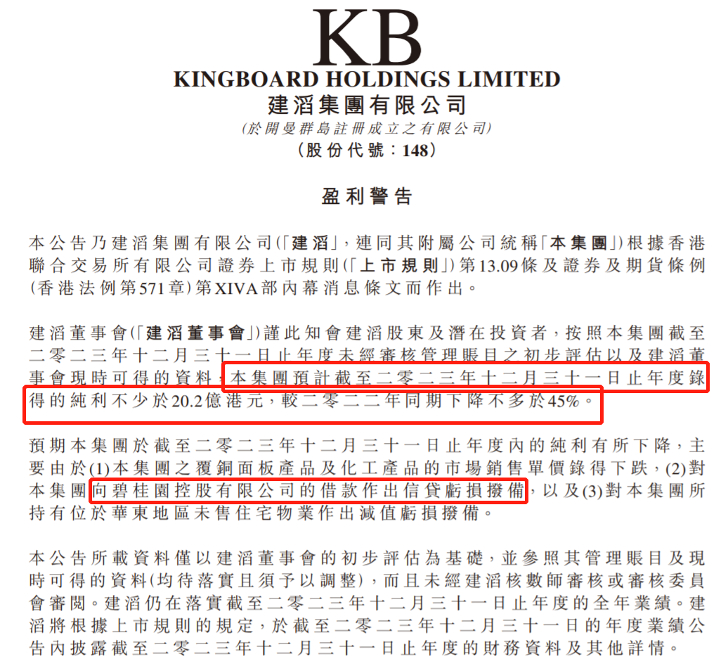 值得注意的是,此次對碧桂園“發難”的建滔集團,是一家以印刷線路板、化工產品等為主要業務的企業。不僅持有富力的股權,還曾多次購入富力、碧桂園的公開票據,且認購比例并不低。隨著房地產行業的下行,建滔的業績受到影響,預計2023年凈利潤同比下降多于45%。踩坑房地產后的“化工大王”此次決定高調行動,或許是迫不得已的一種自救。