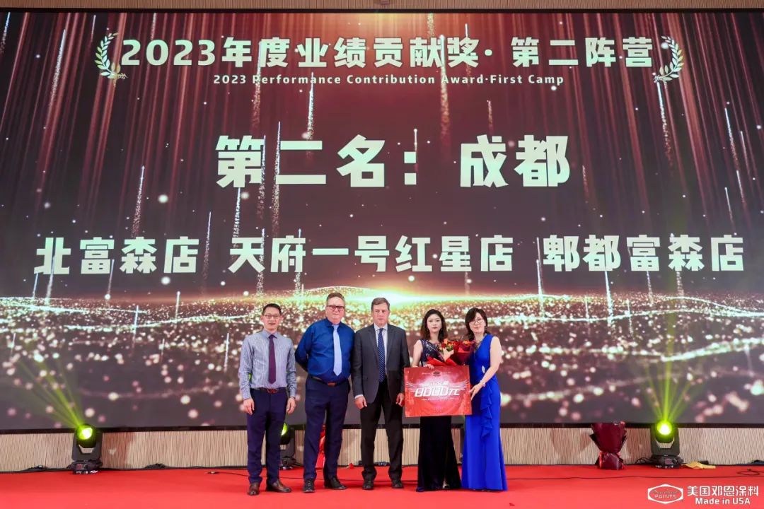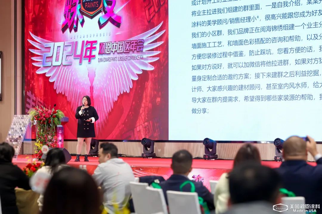 28號,各分區進行了《區域-2023經營分享總結暨2024規劃》會議。29號,我們迎來了美國鄧恩涂料首席運營總裁Monte Lewis和出口部總經理David Henry的致辭。Monte Lewis為我們揭示了未來的商業發展趨勢,分享他對鄧恩蛻變之道的獨到見解。David Henry深度解讀了全球市場的變化,為我們提供把握商機的關鍵線索。美國鄧恩(中國)運營總監及色彩總監Lillian Wu以《鄧恩中國2024發展規劃之蝶變》為主題分享了獨特的規劃視角。