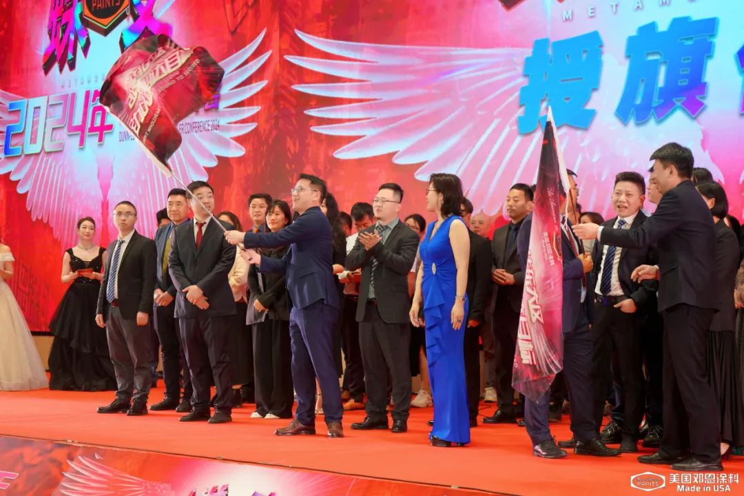 晚宴開始,NVOMI BAND樂隊的激情演唱為整個晚宴帶來了無盡活力。在授旗儀式中,Lillian Wu親自為各區經理授旗,表達了對各區的信任與期望。緊接著,Lillian Wu攜Monte Lewis、David Henry以及各部門總監發表祝酒詞,為這個充滿期待的夜晚拉開序幕。