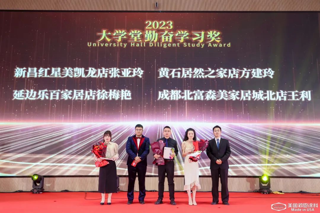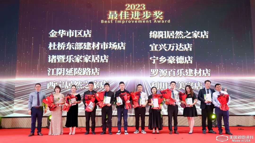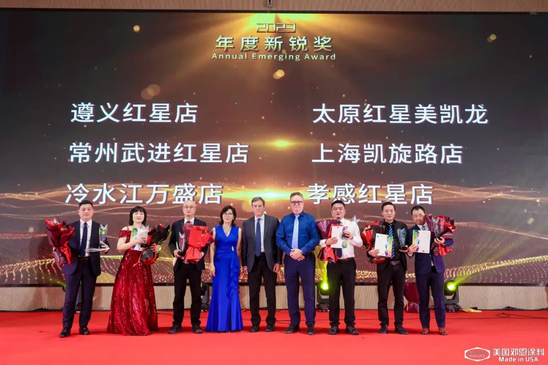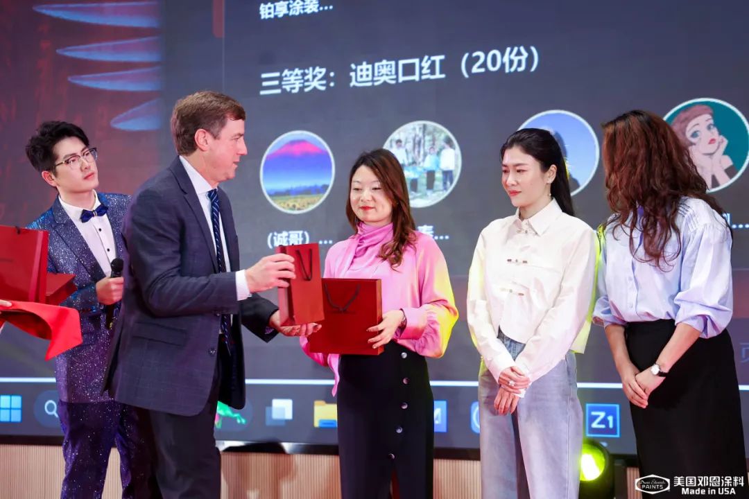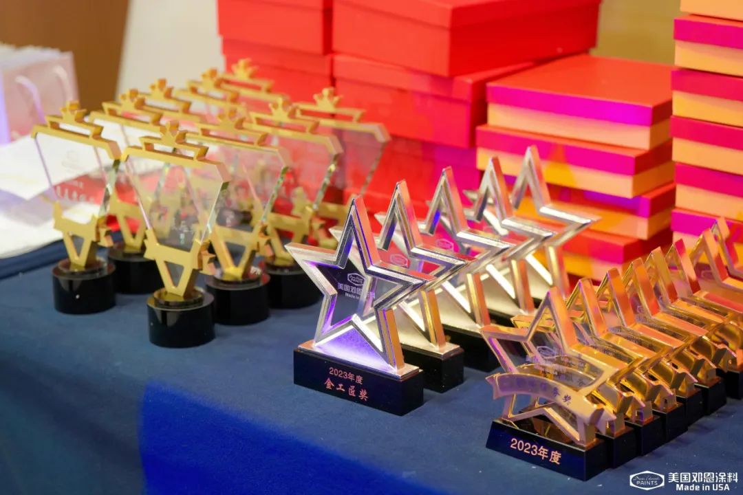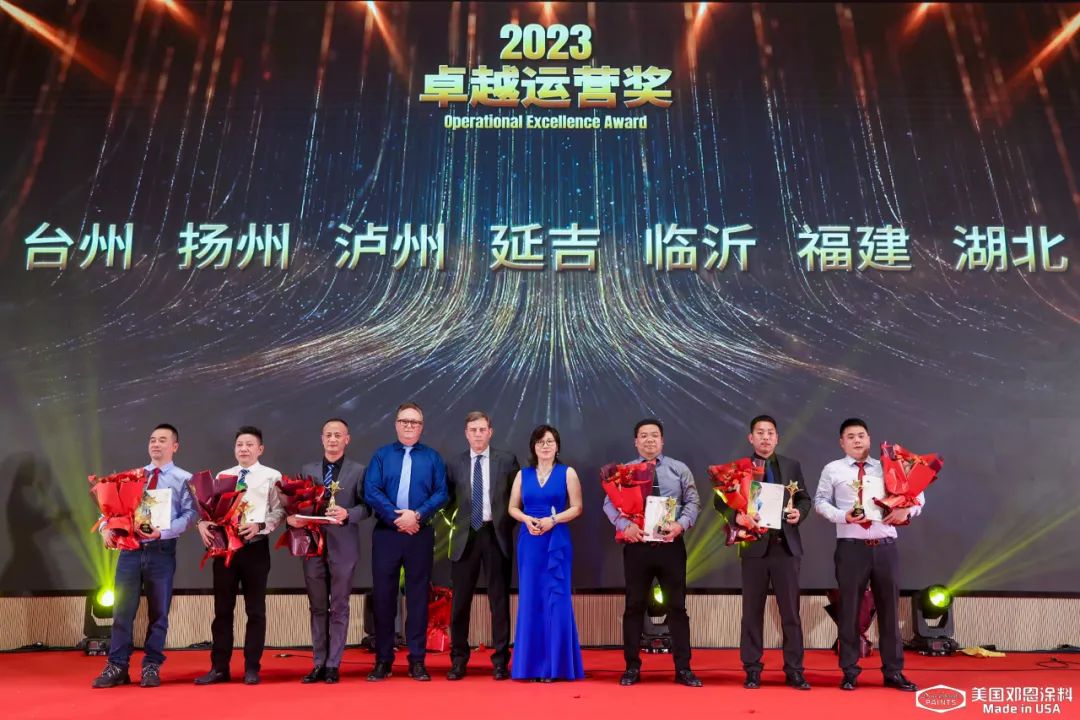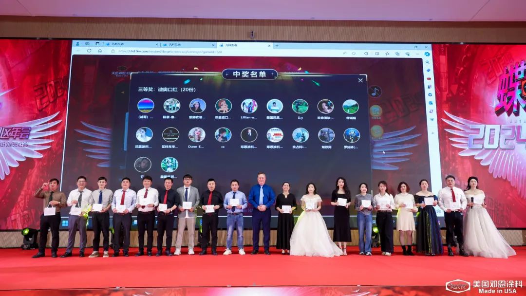 在歡聲笑語中,我們迎來整個晚宴最為莊重的時刻——頒獎典禮。Monte Lewis、David Henry、Lillian Wu以及公司各部門總監共同為在過去一年表現突出的經銷商頒發榮譽獎項,表彰他們在業務上的杰出表現和對公司的巨大貢獻。這不僅是對個人努力的肯定,也是對整個團隊協作的嘉獎,使他們的光榮時刻定格在鄧恩歷史的畫卷上。