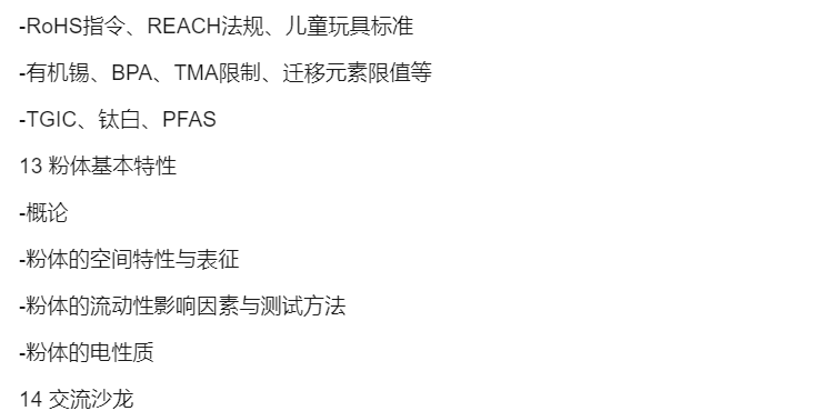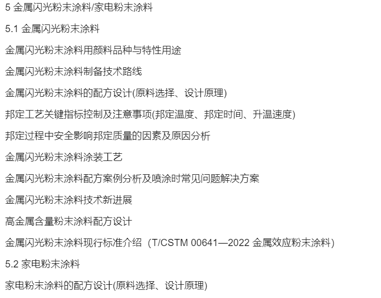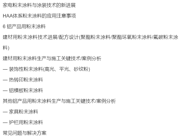 一年一度的粉末涂料培訓班將于2024年4月8日—12日在常州舉辦。本年的配方設計培訓班課程設置注重功能、專用及實戰,并加重了前沿技術的份量,亦保留了各類粉末涂料的生產施工關鍵技術與常見問題分析。從防腐、絕緣、耐高溫等功能性粉末涂料體系講起,進而講述各種專用型粉末涂料配方設計及助劑的應用技術,延續了金屬閃光粉末涂料,專設了新能源電池粉末涂料、防火粉末涂料、熱敏基材用粉末涂料等講課內容,并在實際應用的基礎上增設實戰分享。