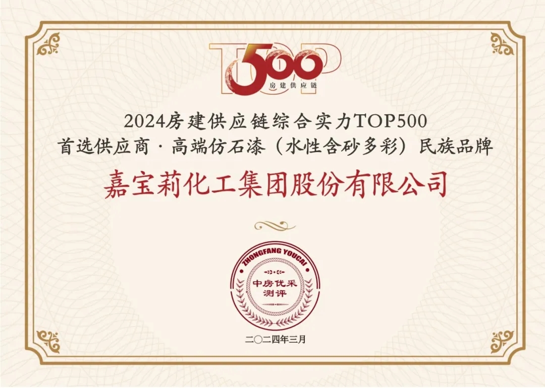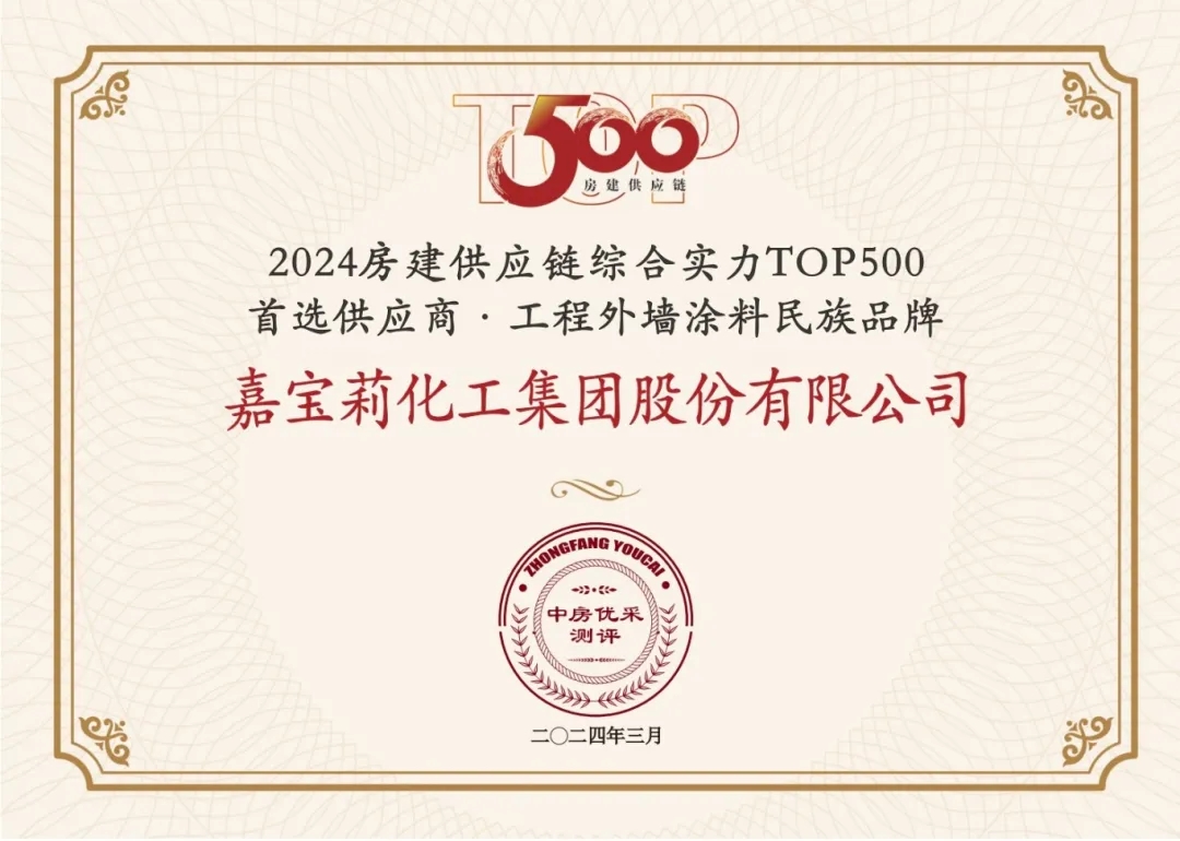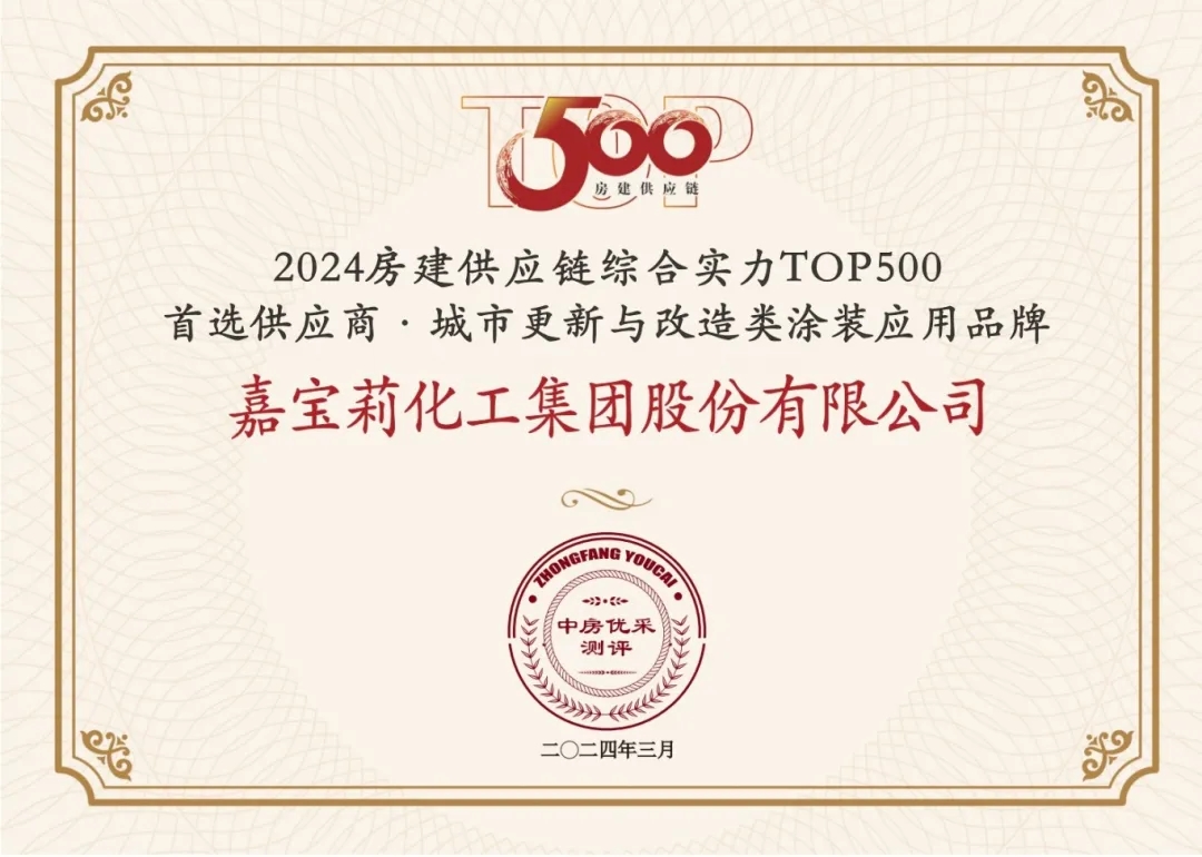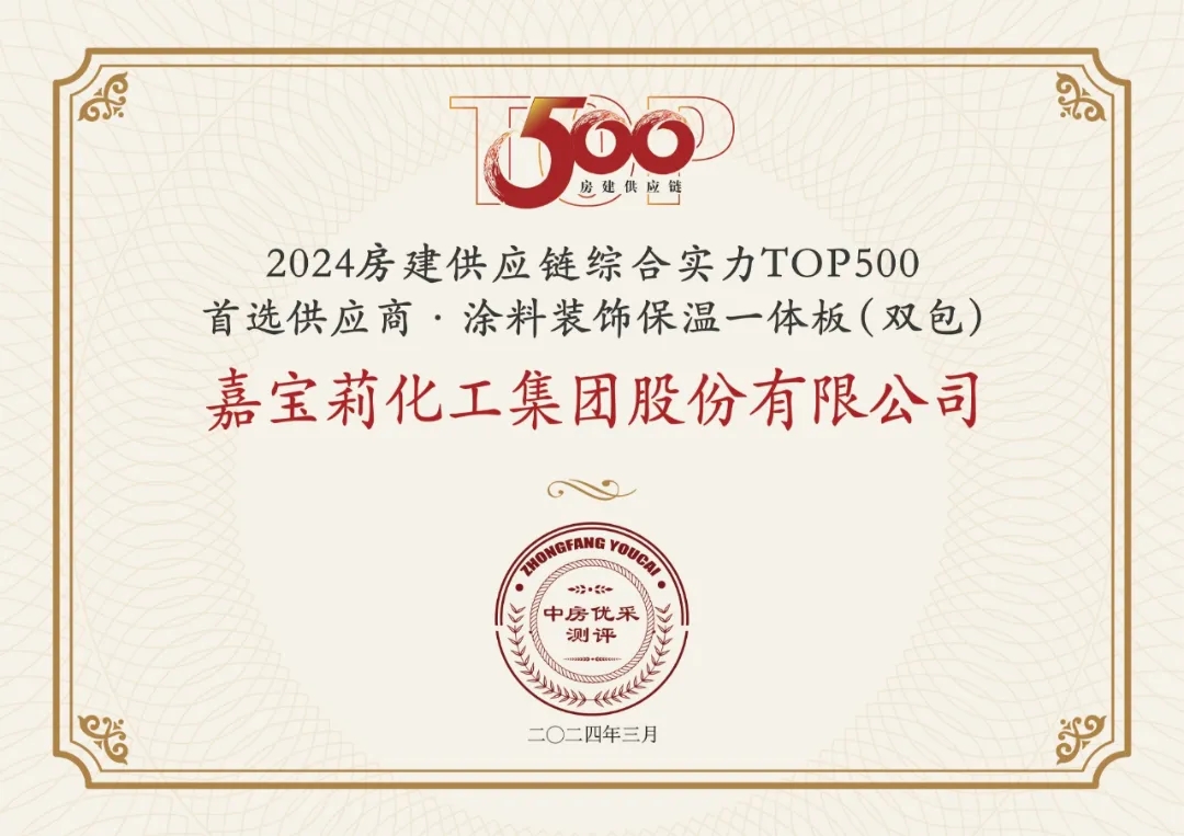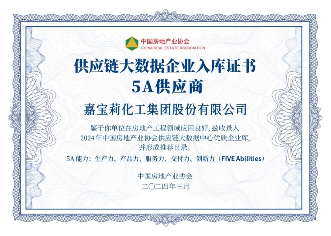 嘉寶莉憑借卓越的綜合實力,連續8年入圍“房建供應鏈綜合實力TOP500”榜單,攬獲7項大獎,并入選中國房地產業協會供應鏈大數據中心“5A供應商”企業庫。