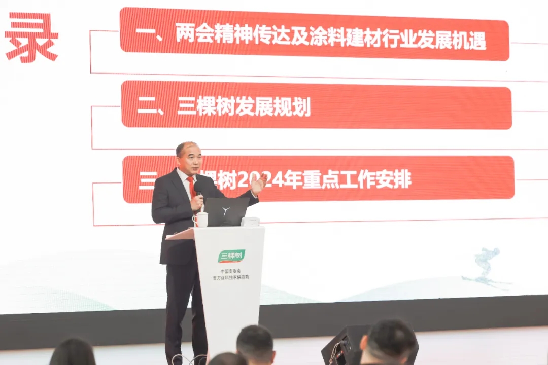 洪杰董事長表示,2023年三棵樹行業地位進一步鞏固,在高質量發展方面邁出重要步伐,并取得了突破性成果,實現了新二十年的完美開局,他向全體合作伙伴和社會各界表示衷心的感謝!2024年,三棵樹將加強文化引領,堅定發展信心, 堅持高質量發展主線,聚焦“渠道為王,降本增效,全面協同”三大主題,全面打好“利潤、品類、打井”三大戰役,與廣大合作伙伴順應大勢,精誠合作,共創共贏。