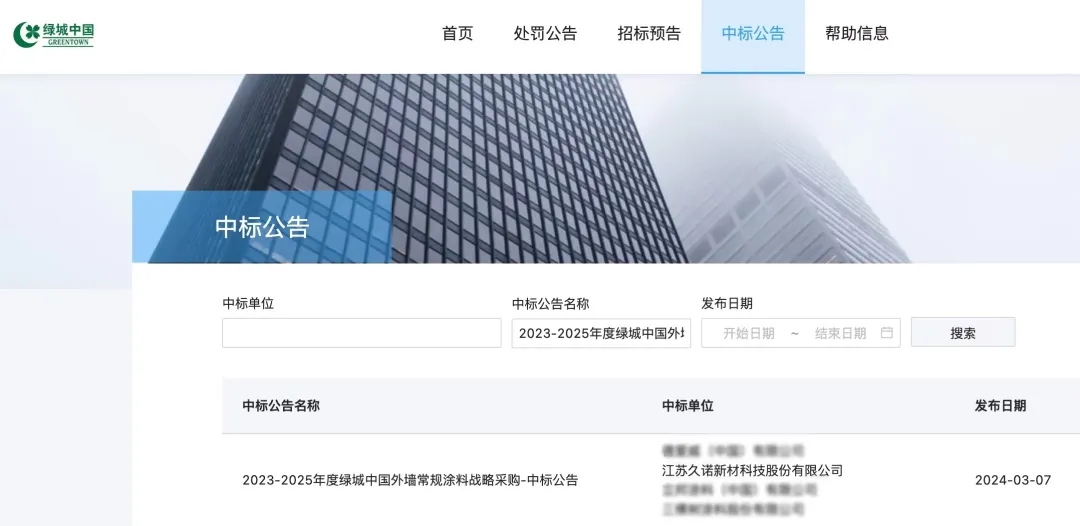 近日,綠城中國(guó)控股有限公司公布了2023-2025年度綠城中國(guó)內(nèi)外墻涂料戰(zhàn)略采購(gòu)名單,久諾憑借專業(yè)的產(chǎn)品和技術(shù)、系統(tǒng)化的方案、標(biāo)準(zhǔn)化的服務(wù)等出色的綜合實(shí)力,成功中標(biāo)2023-2025年度綠城中國(guó)內(nèi)外墻涂料戰(zhàn)略采購(gòu),此次中標(biāo)將正式開啟久諾與綠城中國(guó)的嶄新合作篇章!