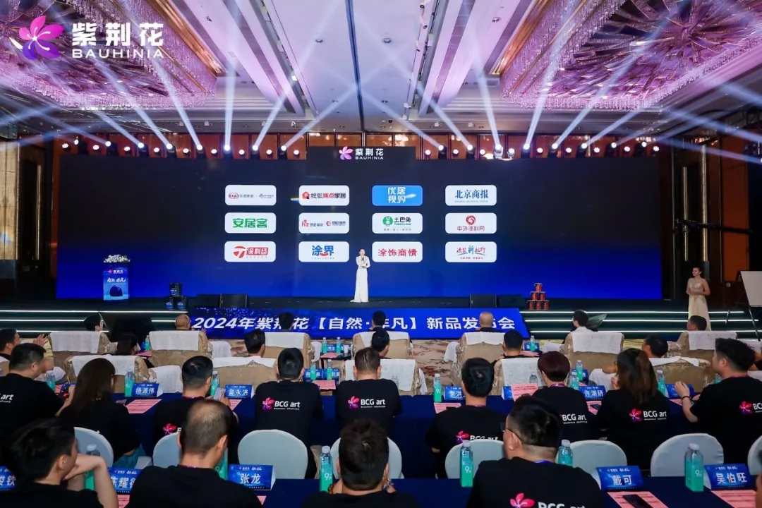 3月27日,2024年紫荊花新品發布會在廣州香格里拉酒店盛大舉行,大會以“自然·非凡”為主題,寓意紫荊花在新的一年實現產品品質的突破與市場戰略布局的革新。會上紫荊花重磅發布會“紫荊花BCGart萊姆石藝術涂料”和“紫荊花純天然無機貝倍安原生硅基嬰幼兒墻面漆產品”兩款新品,代表了紫荊花創新和環保品質的新高度。