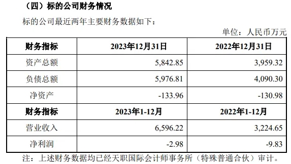長沙松潤是蔚來、理想、吉利、廣汽、小鵬、一汽紅旗等眾多國內外知名整車及汽車零部件等企業的供應商,主要為汽車企業提供涂料等多類別系統化解決方案的新型功能涂層材料。公告中提及,標的公司(長沙松潤)近2年的凈資產和凈利潤均為負值,其中2023年年底凈資產為-133.96萬元,2023年全年凈利潤-2.98萬元。