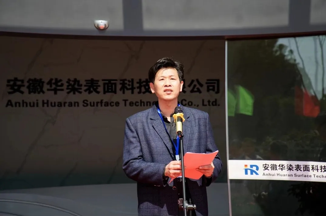 華染安徽華染表面科技有限公司高級(jí)工程師、生產(chǎn)廠長(zhǎng)洪欣向到來(lái)的貴賓表示熱烈的祝愿!
