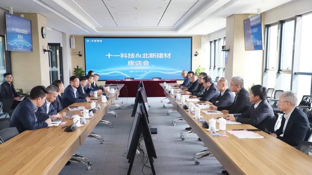 3月28日,十一科技董事長趙振元一行到北新建材參觀考察,雙方就共同探討合作方向及深化合作落地業務進行座談交流。