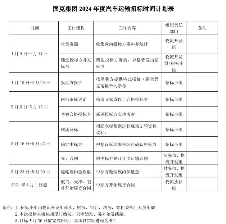 3. 合格參標方將進入投標技術標書準備階段(提供合同版本、發貨量、始發地參考、報價表等),時間為4月18日—4月29日,若有變動,以線下通知為準。