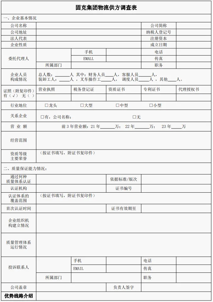 備注:1-5項以word文檔為主,按目錄、供方調查表、各種證照、資質證明等順序裝訂;未提及部分自行安排。