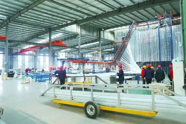 經過6個月快馬加鞭的建設,占地70畝、投資3億元的成鋁新材料一期項目于2023年3月順利投產。湯勇說,7條鋁型材擠壓生產線、2條噴涂線、5條穿條線、2座時效爐等全力運轉,能為公司帶來5億元的年產值。