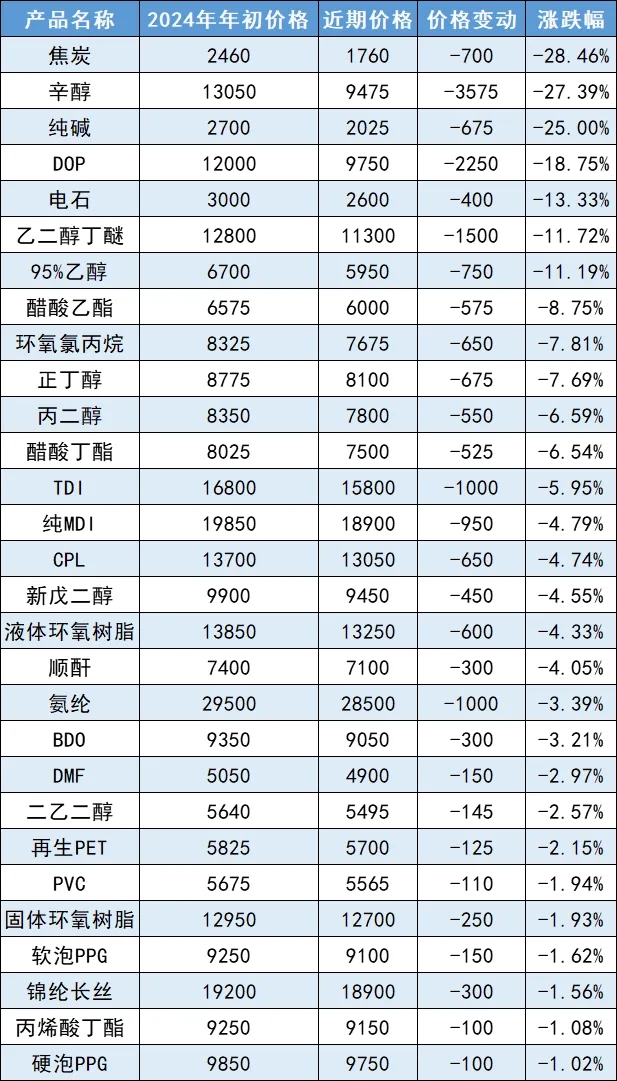 DOP目前報價9750元/噸,較年初價格下跌2250元/噸,跌幅18.75%;