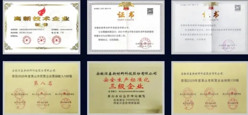 此外,恒泰新科榮獲安徽省“A級(jí)納稅信用等級(jí)單位”、“安徽名牌”、安徽省“著名商標(biāo)”、黃山市銀行信貸誠(chéng)信企業(yè)、市第一屆“誠(chéng)信示范企業(yè)”等榮譽(yù)稱(chēng)號(hào)。2018年,恒泰新科被列入“安徽省重大新興產(chǎn)業(yè)工程承擔(dān)單位”。這些榮譽(yù)不僅是對(duì)恒泰新科的肯定,更是對(duì)其持續(xù)創(chuàng)新和卓越品質(zhì)的認(rèn)可。