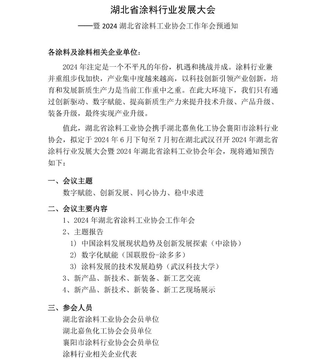 ──暨2024湖北省涂料工業(yè)協(xié)會工作年會預(yù)通知