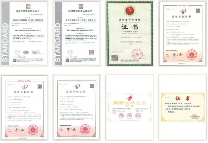 昌和化學的科技創新成果顯著,擁有發明專利13項,實用新型專利22項,并在2017年和2018年分別通過ISO9001、ISO14001體系認證,以及被評為市級綠色工廠。這些榮譽證明了昌和化學在產品質量、環保意識和生產效率方面的卓越表現。他們的產品不僅在國內市場上占據了重要地位,還遠銷海外,贏得了廣泛的贊譽和認可。