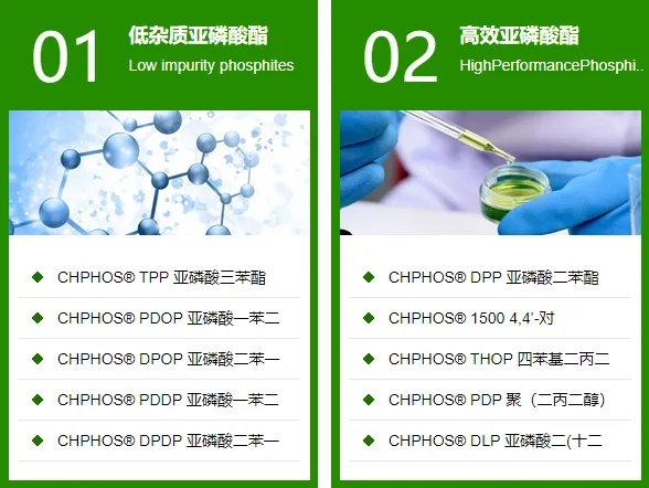 此外,昌和化學的明星產品CHPHOS®8608T耐熱性能佳,可應用PVC環保穩定劑、聚氨酯、涂料等高分子材料中;CHPHOS®618具有優良的初期著色性和透明性,可用于食品包裝材料,取代抗氧劑BHT和輔助抗氧劑DLTP;CHPHOS®8621除有良好的抑制顏色外,還可增加抗氧性和光穩定性。