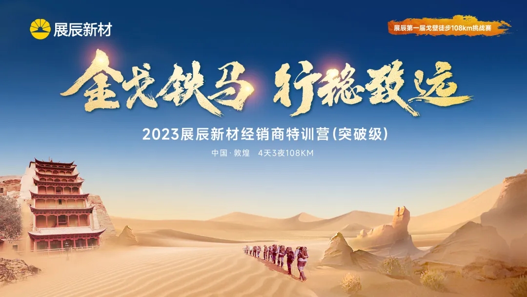 9月11日,天空湛藍如洗,秋高氣爽,以“金戈鐵馬,行穩(wěn)致遠”為主題的2023展辰新材經(jīng)銷商特訓營(突破級)在絲路古城敦煌順利開營,本次特訓營活動,旨在進一步提升經(jīng)銷商伙伴的專業(yè)知識,交流經(jīng)驗心得,強化團隊凝聚力,更好地把握當下市場機會。