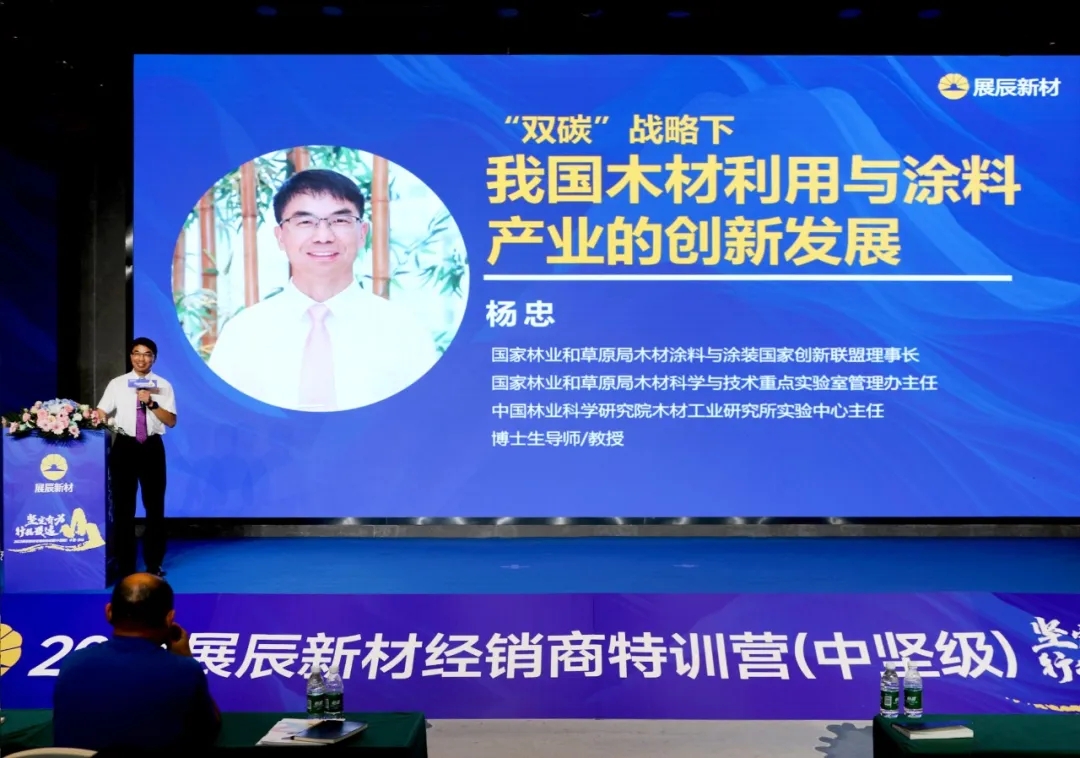 圍繞木材領域的專業應用知識,本次經銷商特訓營活動特邀嘉賓國家林業和草原局木材涂料與涂裝國家創新聯盟理事長楊忠教授為大家帶來“雙碳”戰略下我國木材利用與涂料行業的創新發展主題報告,就“雙碳”戰略帶來的機遇和挑戰,木材科學與木材利用新技術和木材涂料產業的協同創新發展三個方面展開討論,為廣大經銷商伙伴科普了木材的特性和用途,提升了對木材的專業認知。