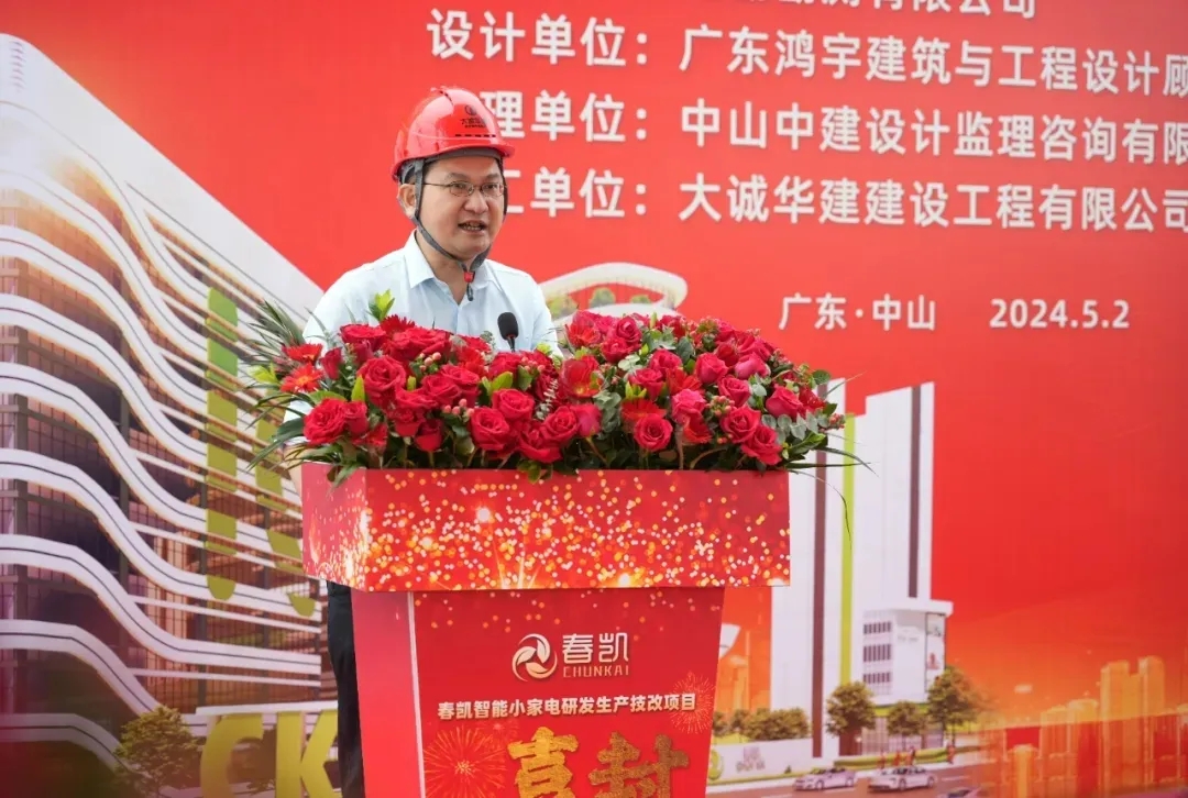 黃圃鎮黨委書記梁泳輝在致辭時表示,黃圃鎮是中山北部中心鎮,地處廣州南沙、佛山順德和中山北部交界位置,衷心希望像春凱電器一樣的優質企業扎根黃圃發展,打下更加強勁的產業基礎。