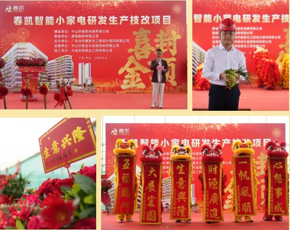 近日,春凱智能小家電研發生產技改項目舉行喜封金頂典禮。黃圃鎮領導梁泳輝、李振、黃炳潮以及項目方春凱電器董事長、麥泳,中山市茂南商會,相關負責人,各界嘉賓約100多人出席儀式典禮,共同見證令人激動的時刻。