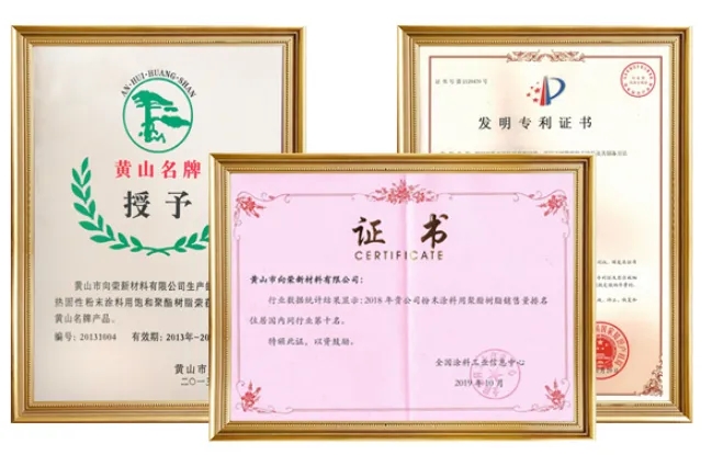 向榮新材料擁有XR系列聚酯樹脂100多個品種,產(chǎn)品遠銷國內(nèi)各大中城市,是國內(nèi)各知名粉末涂料制造企業(yè)的優(yōu)質(zhì)供應商。企業(yè)是國家高新技術企業(yè)、國家專精特新小巨人企業(yè)、安徽省企業(yè)技術中心;擁有授權(quán)專利37項(發(fā)明專利17項、實用新型專利20項)、安徽省新產(chǎn)品5項、省市科技進步獎各1項,省市級科技創(chuàng)新成果和榮譽11項,獲得“安徽省著名商標”、“安徽名牌產(chǎn)品”等稱號。