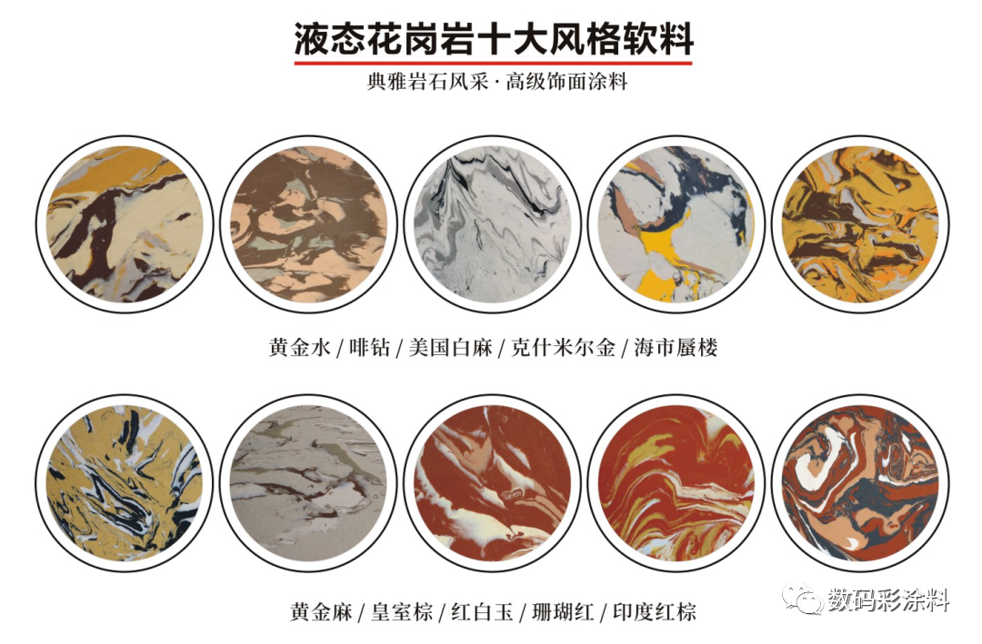 據涂料采購網了解,數碼彩通過長期的市場調研及研發,目前幻影大理石系列有黃金水、啡鉆、美國白麻、克什米爾金、海市蜃樓、黃金麻、皇室棕、紅白玉、珊瑚紅、印度紅棕十大風格軟料,能夠更好地滿足市場需求,不僅適用于各種場合,還具有操作簡單、老少皆宜、一批成型、原石效果、色彩豐富、耐候性強等明顯優點。