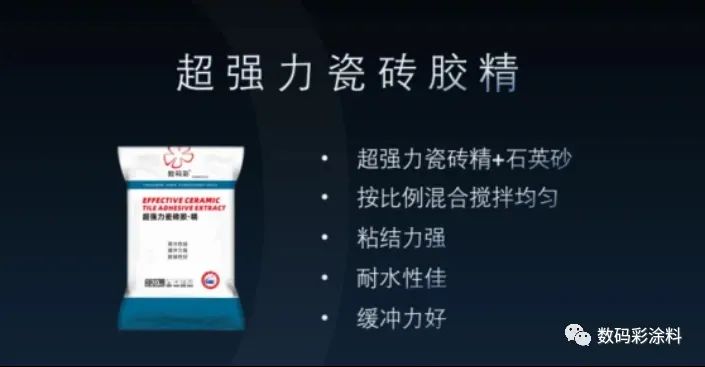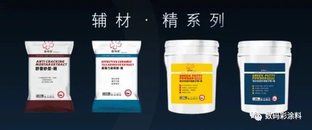 數碼彩輔材·精系列主要分為四大板塊產品:舒普砂·精、超強力瓷磚膠·精、耐水防堿內墻膩子·精、耐水中性外墻膩子精。