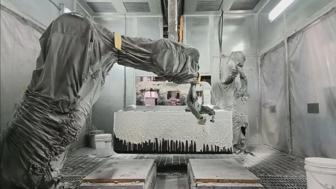 自動噴涂機(jī)器人正在噴涂保護(hù)涂料