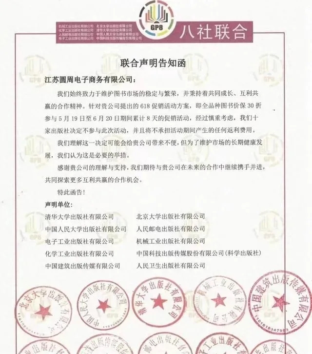 近日,涉及北京和上海共計(jì)58家出版社的兩份聯(lián)合聲明引起了廣泛關(guān)注。聲明針對(duì)京東的618促銷(xiāo)方案活動(dòng)提出了疑問(wèn)和反對(duì)意見(jiàn)。京東近期推出的618促銷(xiāo)方案涉及全品種圖書(shū)價(jià)保2-3折的活動(dòng)內(nèi)容,大促也是為了提高銷(xiāo)量,再讓利消費(fèi)者。但出版行業(yè)不滿,認(rèn)為2-3折的促銷(xiāo)價(jià)已快擊穿成本線。