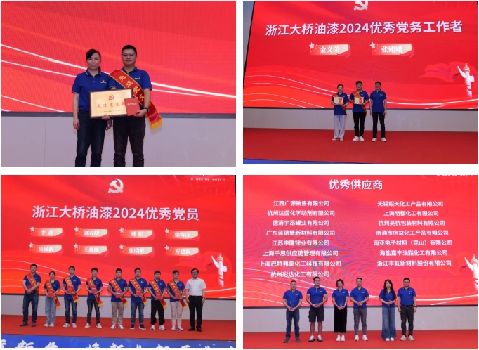 他們的先進事跡和崇高精神,是所有大橋人學習的榜樣和力量源泉。同時還表彰了一直以來與大橋風雨同行的上下游合作伙伴們,感恩他們在大橋油漆穩定高質量發展中的杰出貢獻。