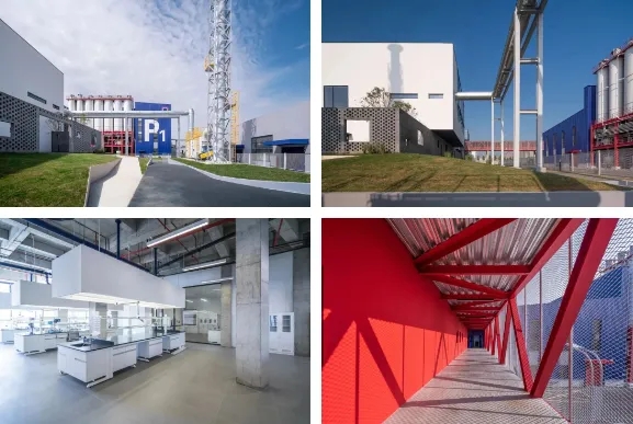 走進(jìn)北新嘉寶莉安徽明光工廠,映入眼簾的不再是高聳入云的煙囪、斑駁的墻面,取而代之的是富有設(shè)計(jì)感的廠區(qū),突破了工業(yè)建筑尤其是化工類建筑的傳統(tǒng)形式和刻板印象,展示了工業(yè)與建筑結(jié)合之美。