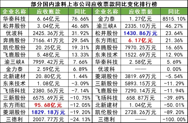 據涂料采購網不完全統計,2023年,涂料上市公司和新三板涂料企業應收票款合計約270億,其中應收賬款超250億,應收票據超過16億。