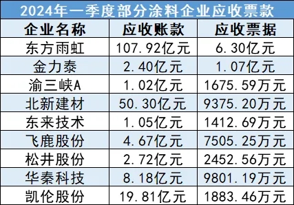 而2024年一季度的情況顯然更為嚴峻,十幾家涂料上市公司的應收票款合計305億,其中應收賬款超過300億,與去年一整年的情況來比,即將達到持平狀態。