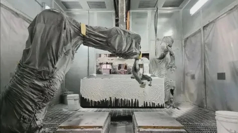 該系統由車間職能人員聯合相關企業共同研發,全程利用噴涂機器人完成炭塊及鋼爪保護涂料自動噴涂工序,提高了噴涂質量和噴涂材料利用率,實現了生產設備的自動化和智能化。
