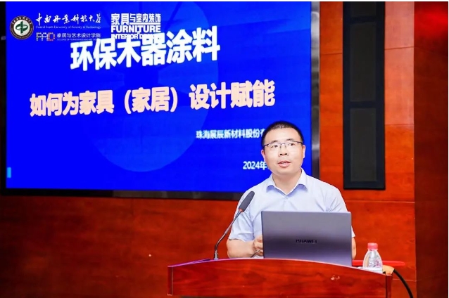 展辰新材市場營銷中心總經理楊求貴先生帶來了《環保木器涂料如何為家具(家居)設計賦能》專題分享,楊總從技術賦能、產品賦能、工藝賦能、服務賦能、色彩賦能等不同維度向大家進行了詳細地講解,并表示環保涂裝升級是家居行業不可阻擋的發展趨勢。