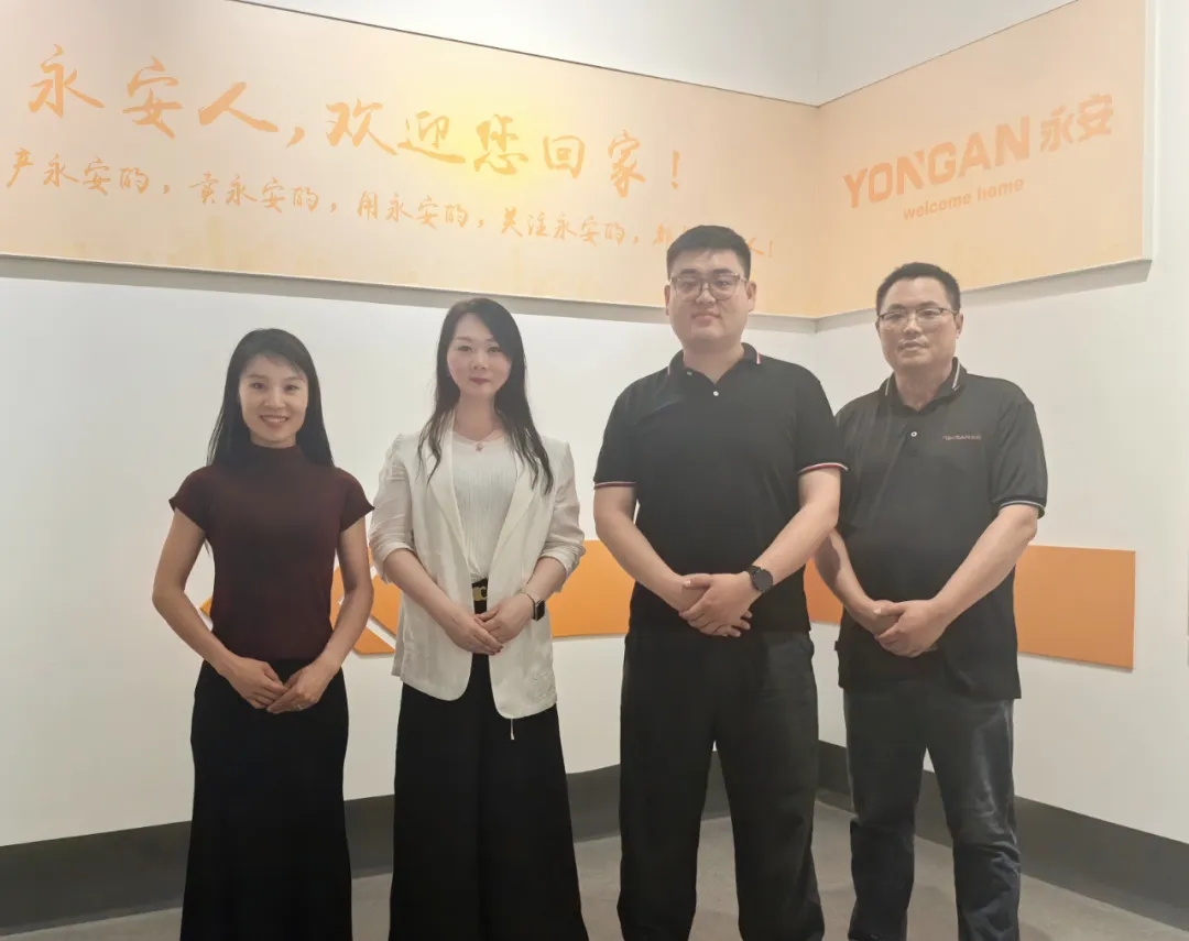 涂料采購網江雪(左二)與永安水漆總經理趙肖黎(右二)等工作人員合影
