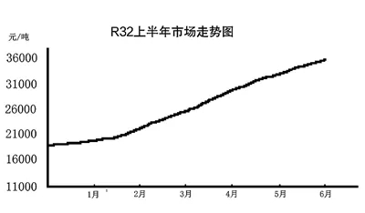 今年上半年制冷劑R32市場風光無限,價格3.6萬元/噸,較年初上漲108.7%,比去年更是大漲161.8%,創近十年新高。