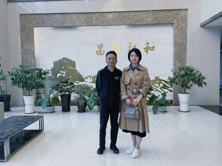 涂料采購網張馨元(右)到訪昌和化學并與總經理胡全勝(左)合影