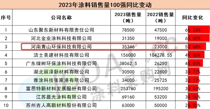 依托自有礦山的優(yōu)勢,青山環(huán)保與青山礦業(yè)緊密聯(lián)動(dòng),為市場提供了穩(wěn)定的產(chǎn)品價(jià)格及堅(jiān)實(shí)的信譽(yù)保障。這正是青山環(huán)保能夠榮登“2023年涂料銷售量100強(qiáng)排行榜”的核心要素之一。展望未來,作為同比增長勢頭最為迅猛的頭部涂料企業(yè)之一,我們有理由相信,青山環(huán)保將憑借其前瞻性的創(chuàng)新理念,持續(xù)影響并引領(lǐng)涂料行業(yè)的眾多企業(yè),為上下游客戶降本增效之路創(chuàng)造更大的價(jià)值。