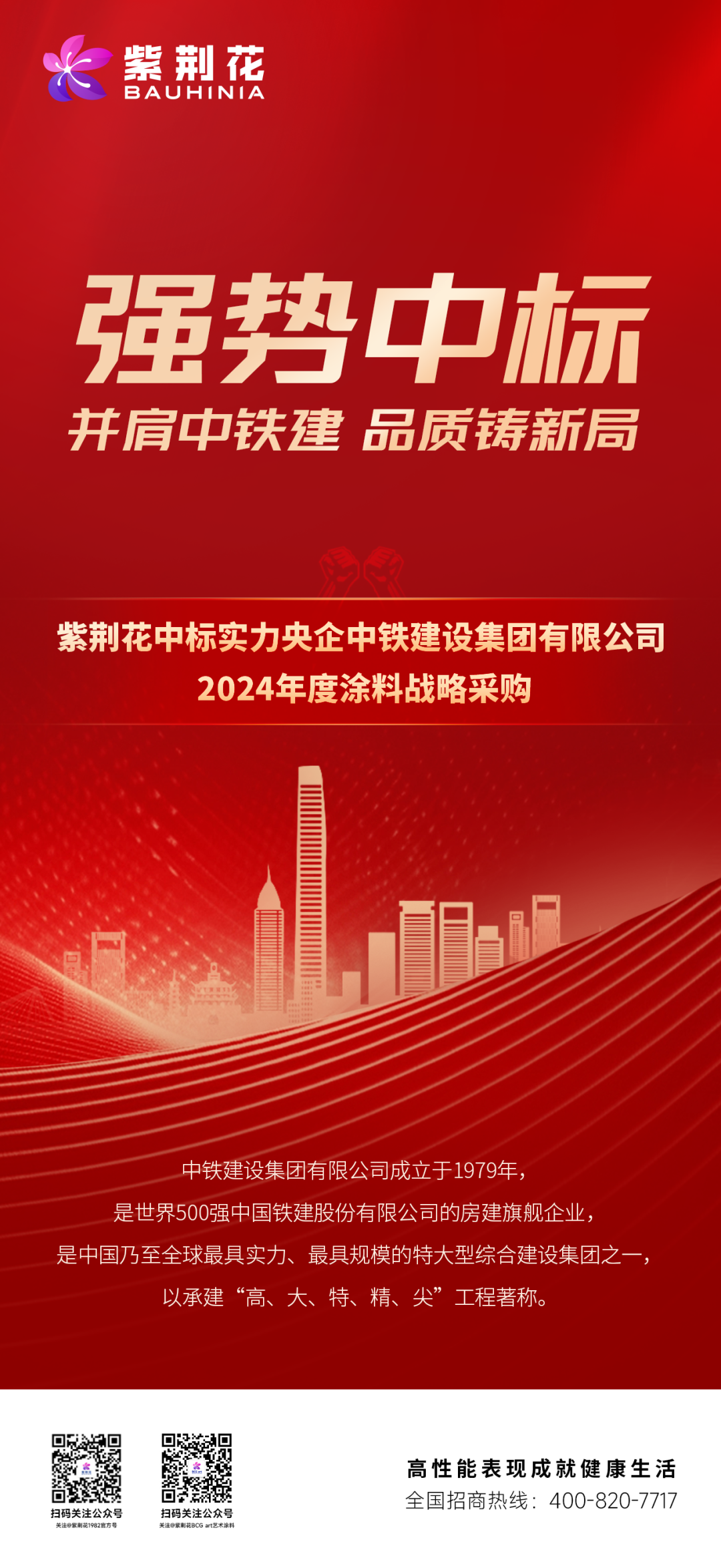 近日,紫荊花成功中標2024年度中鐵建設集團有限公司涂料戰(zhàn)略采購項目,標志著雙方攜手開啟新的合作篇章!
