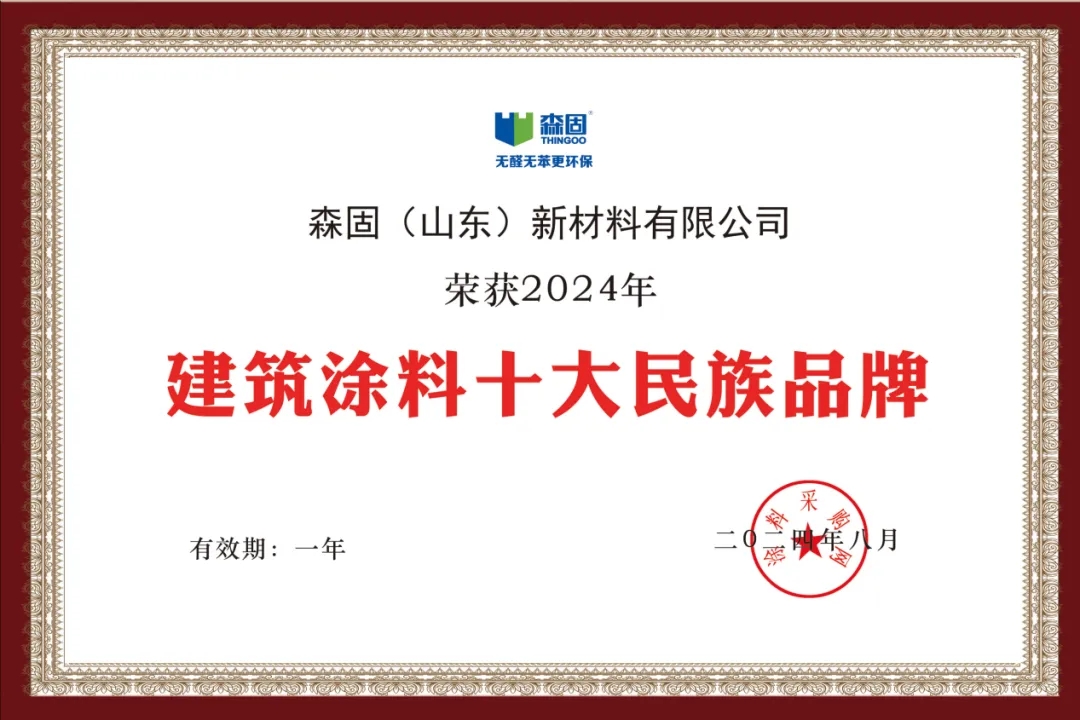 在激烈角逐之中,森固(山東)新材料有限公司(以下簡稱“森固新材料”)憑借其深厚的行業積淀、卓越的產品品質、持續的技術創新以及突出的市場表現,成功從眾多參評品牌中脫穎而出,榮登“建筑涂料”十強榜單。這一榮譽的獲得,是森固作為民族涂料品牌,在推動行業技術進步、提升產品品質、踐行環保理念等方面所取得成就的高度認可與肯定。
