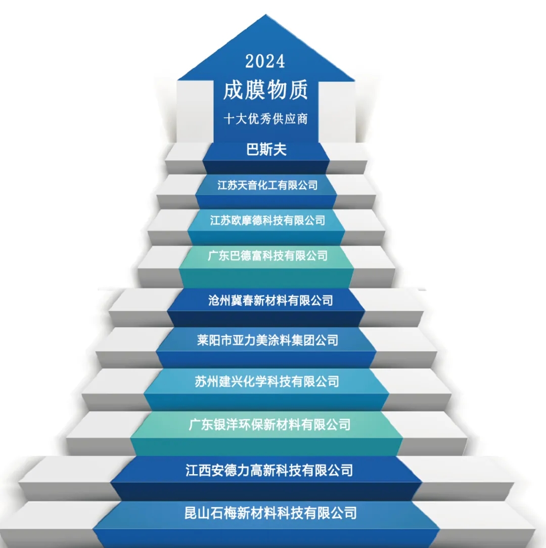 巴斯夫、江蘇天音化工有限公司等十家企業榮膺“成膜物質十大優秀供應商”稱號,以領先的技術、優質的產品和卓越的服務,為涂料企業提供了堅實的性能保障。