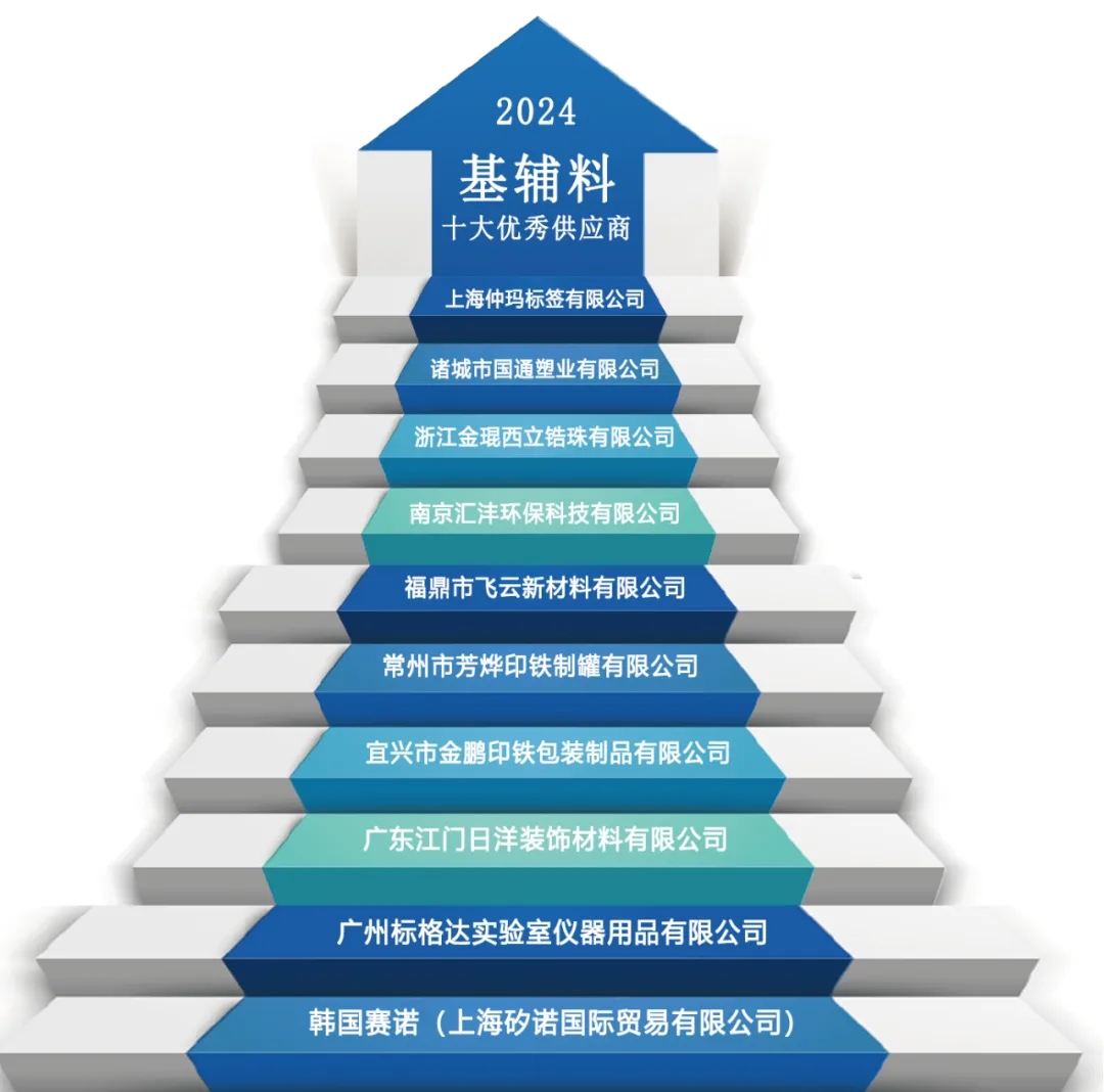 上海仲瑪標簽有限公司、諸城市國通塑業有限公司等十家企業榮膺“基輔料十大優秀供應商”稱號,以穩定的質量和創新的技術,為涂料行業的綠色轉型和高質量發展貢獻了重要力量。