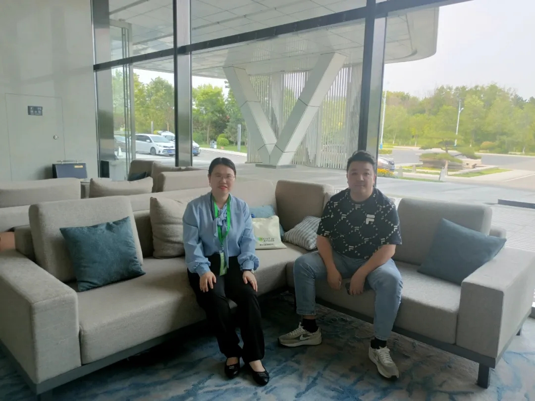 涂料采購網主編于琢(左)與儒佳科技銷售負責人張楊(右)合影留念