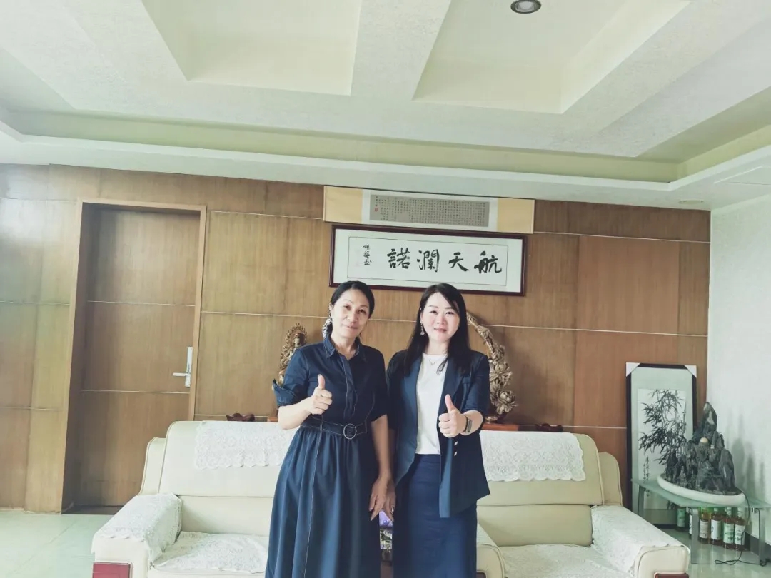 航天瀾諾趙總與涂料采購網江雪(右)合影