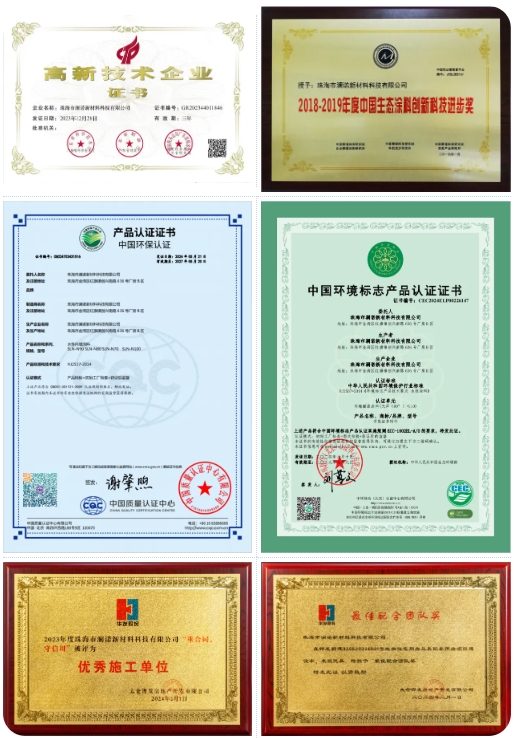 調研過程中,據航天瀾諾趙總介紹:航天瀾諾發展至今正好10年,所謂“十年磨一劍”,在這10年的發展過程中,航天瀾諾一直用心做產品,努力做服務。2016年被認定為高新技術企業,有5款產品被認定為廣東省高新技術產品;2019年榮獲中國生態涂料創新科技進步獎;2020年6月,瀾諾與中國航天建設集團有限公司簽訂了戰略合作協議,獲得中國航天品牌商標授權,為企業植入了央企基因;2022年12月被認定為“珠海市專精特新(培育)企業”。