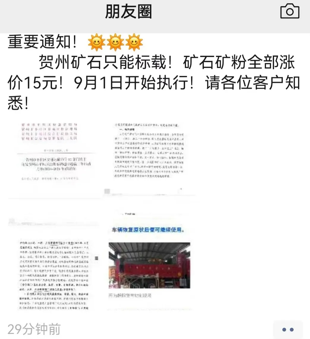 另外,今年年中賀州市交通運輸局發布了《賀州市交通運輸局等14部門關于印發賀州市治理車輛超限超載三年行動方案(2024-2026年)的通知》,當地礦石廠表示,可能會引發礦石、礦粉漲價。