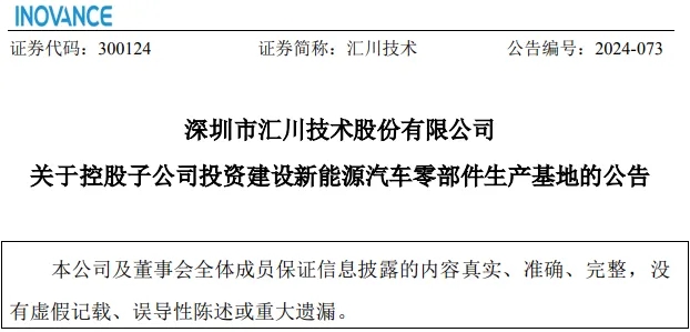 此外,匯川聯(lián)合動力還于2024年8月成立新能源汽車技術(shù)(蘇州)有限公司,該公司位于吳中太湖新城,注冊資本50000萬元。